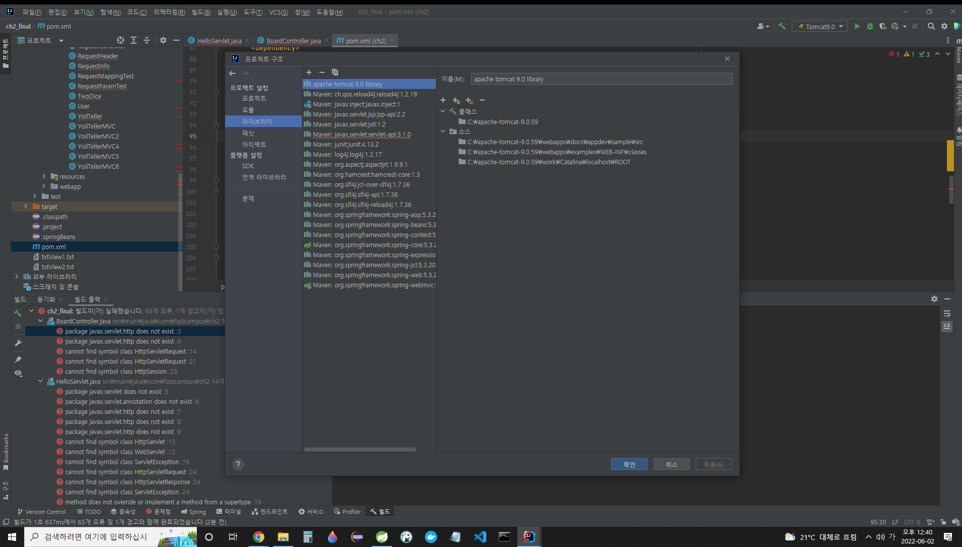 servlet api을 3.1.0으로 수정하였는데도 여전히 에러발생!